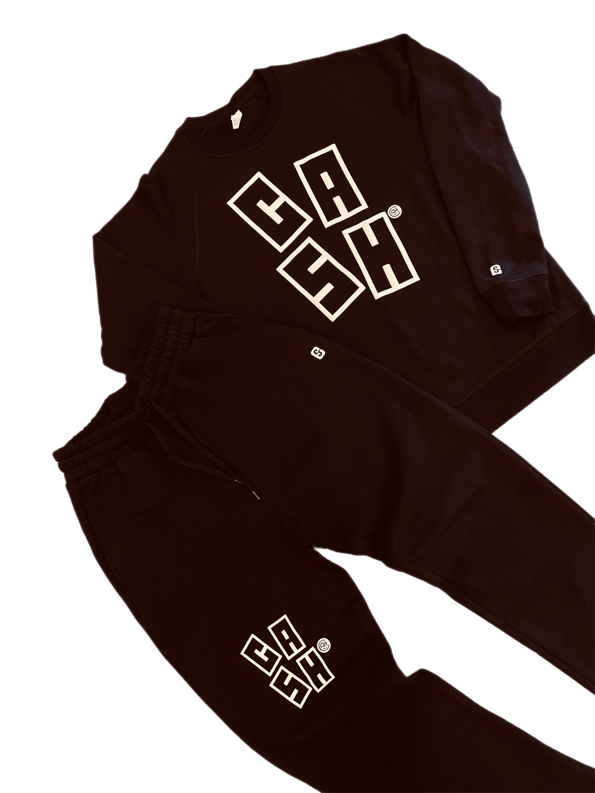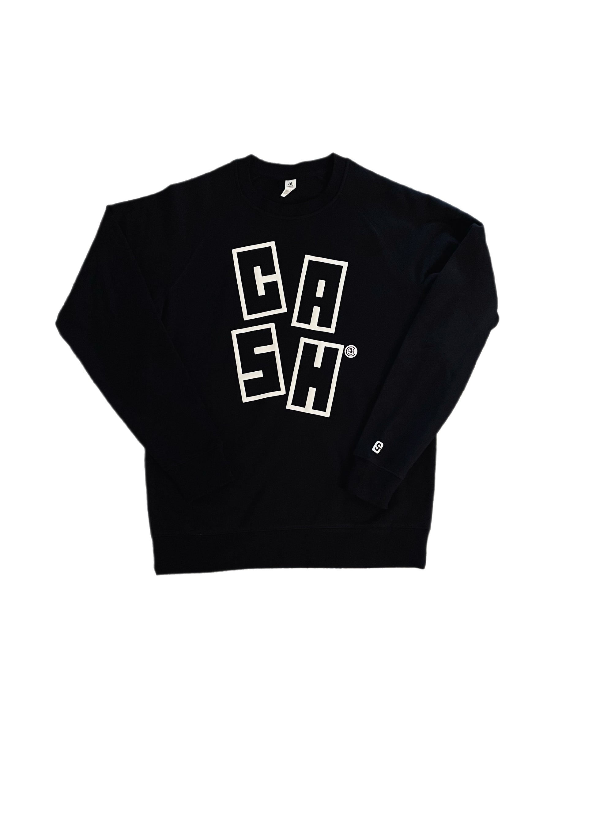 - Black Crewneck with White 3D Stacked Print & our Custom C&S Trademark Symbol in White